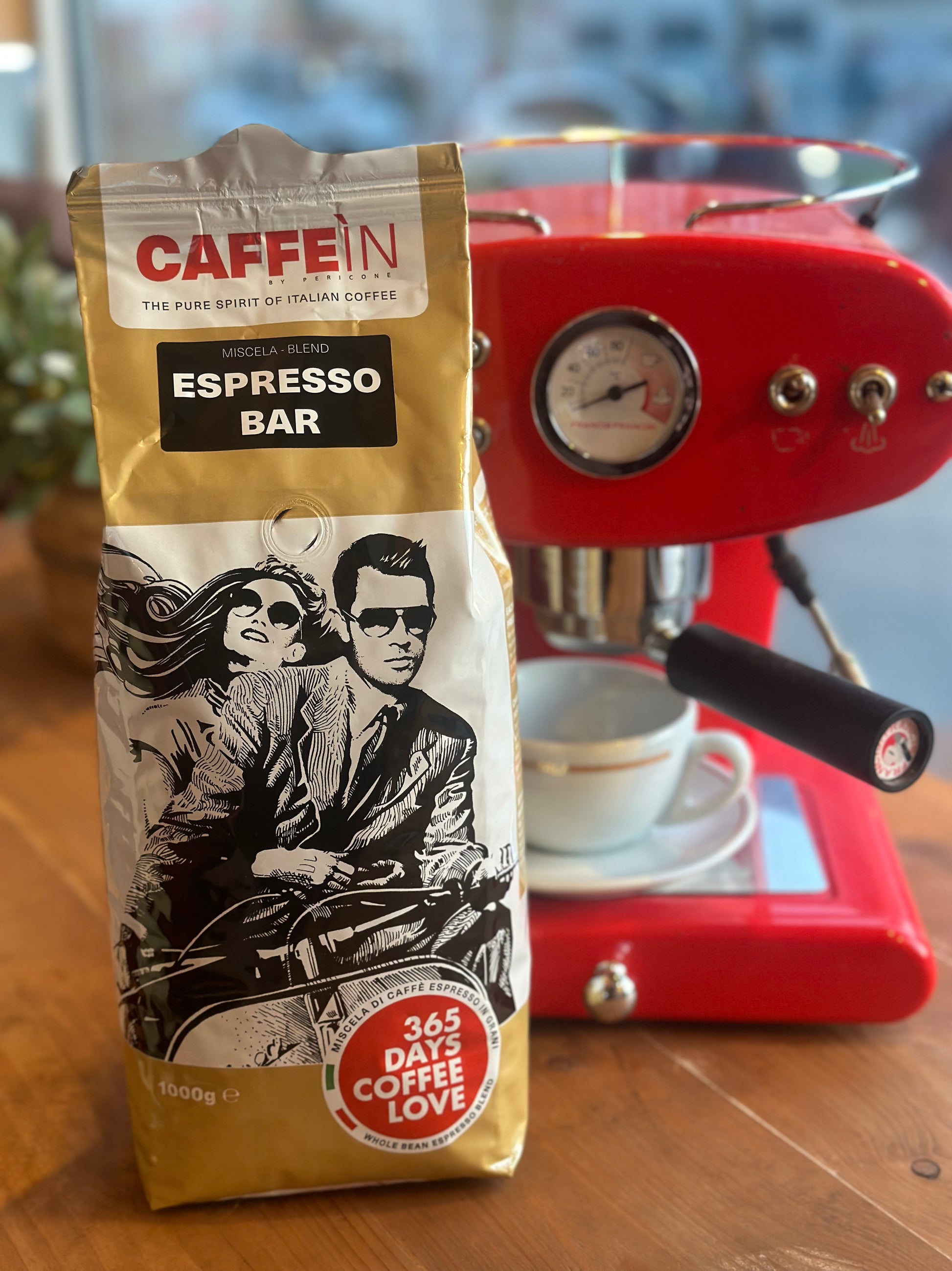 Der Espresso Bar Blend ist das Ergebnis einer sorgfältigen Mischung stark ausgewählter Kaffeesorten, die einen Espresso mit intensivem Haselnuss- und Schokoladenaroma ergibt. Den Sinnen präsentiert er sich stark cremig und füllig, mit kräftigem, aber süßem Geschmack. Optisch ist diese Mischung aus dunkler Haselnussfarbe mit Tigerstreifen und einer sehr dichten Crema.